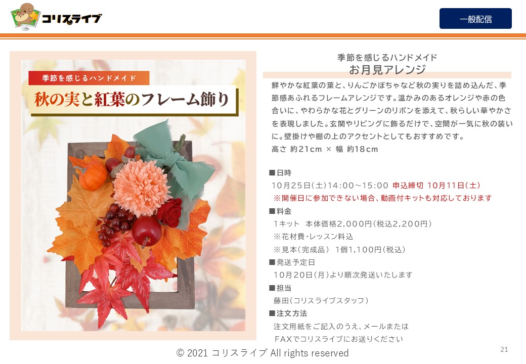 10月11日(土)※オンライン番組に参加の場合。キットのみの場合は、実施日の2週間前までにお申し込みください。